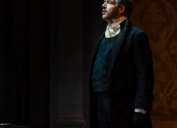 "Giles Tomkins played a number of roles and was most effective as the escaped prisoner Angelotti looking ragged and hungry as he scurried about the stage looking for places to hide."