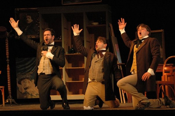 "Bass-baritone Giles Tomkins crafted a convincing philosopher Colline, who particularly shone during his aria 'Vecchia zimarra'."